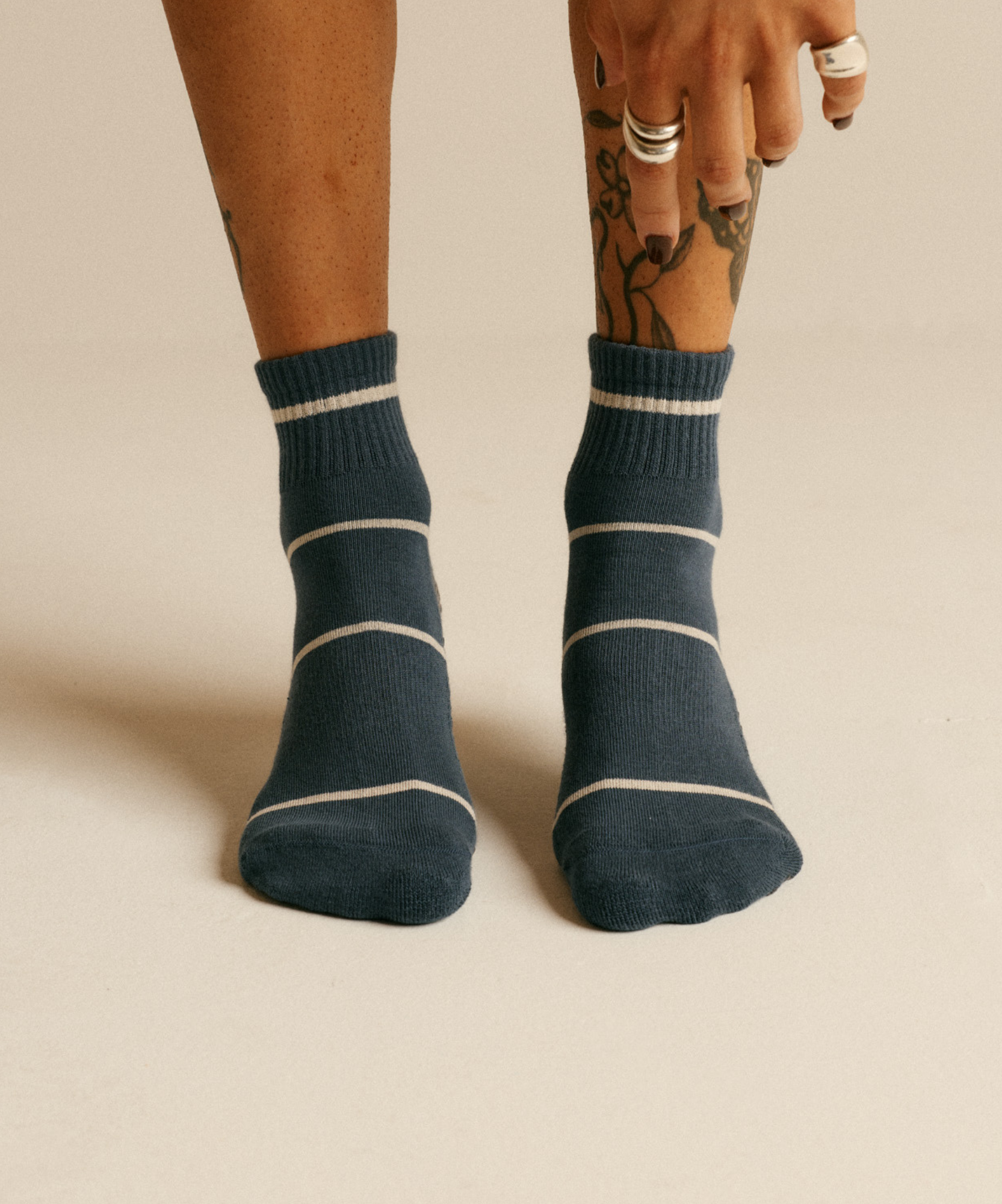 Quarter Crew Non Slip Grip Socks - Baseline Navy