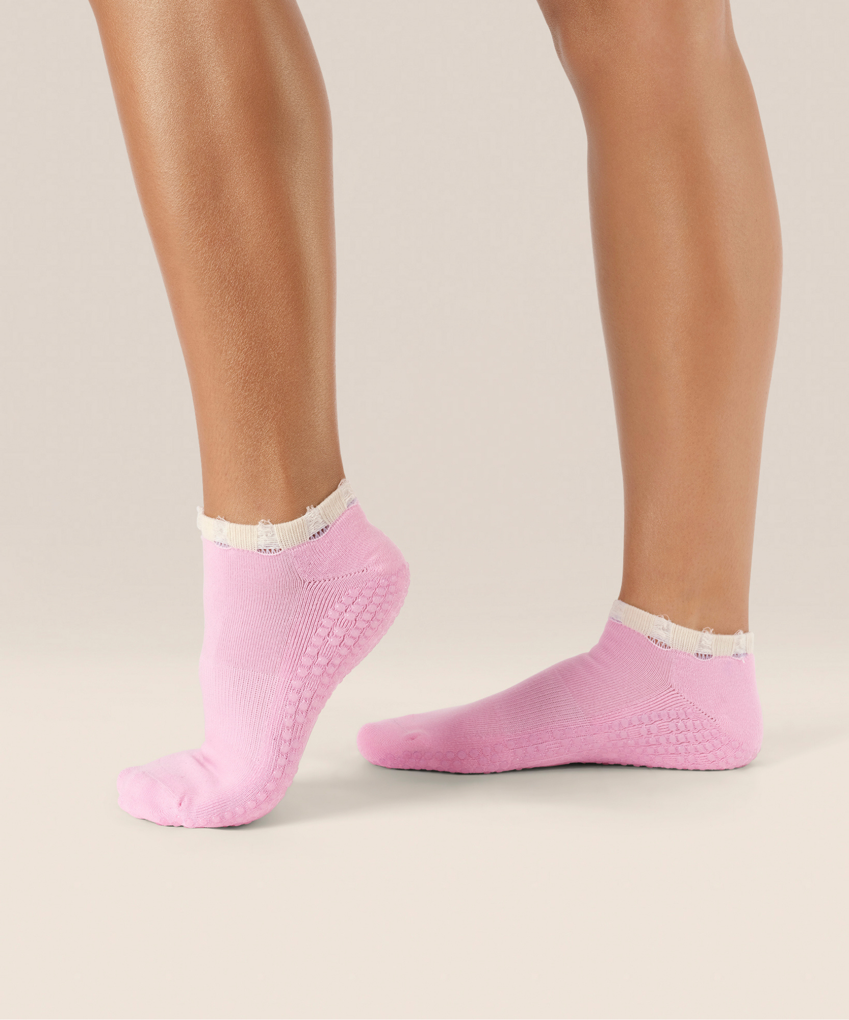 Crew Non Slip Grip Socks - Pilates Club Pink