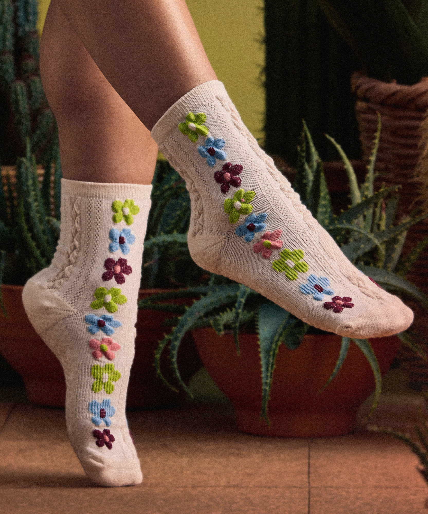 Step into a world of soft florals, earthy hues, and delicate details with our latest grip sock collection, Bloom. From embroidered sunflowers and strawberries to dainty hearts and vintage-inspired frills, the palette embraces warm neutrals, soft pastels, and rich browns.