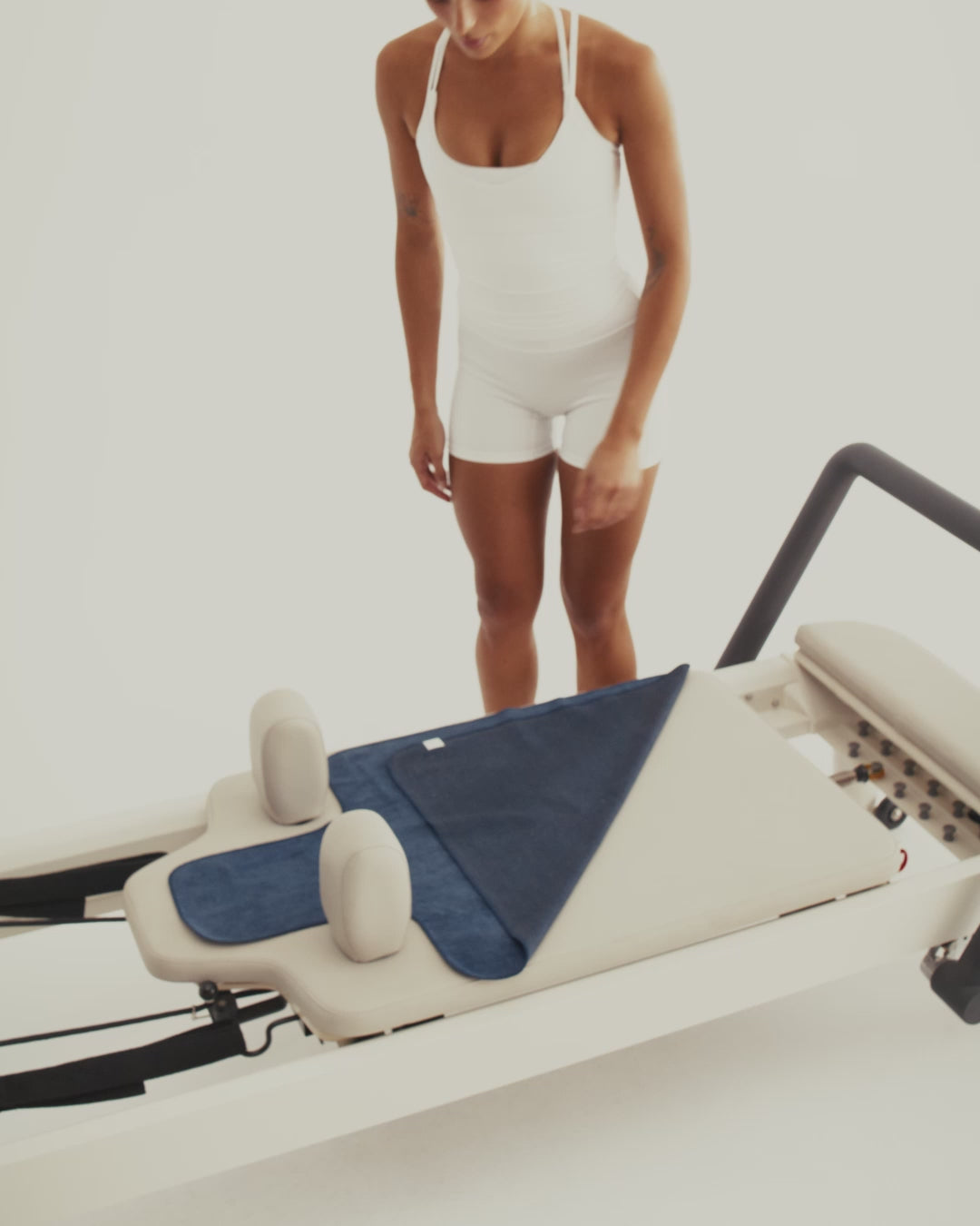 Designed to sit neatly on the reformer carriage, box, or jump board, it stays in place without bunching or shifting. Lightweight and easy to carry, it adds a considered hygiene layer when using shared studio equipment and is built for regular studio practice.